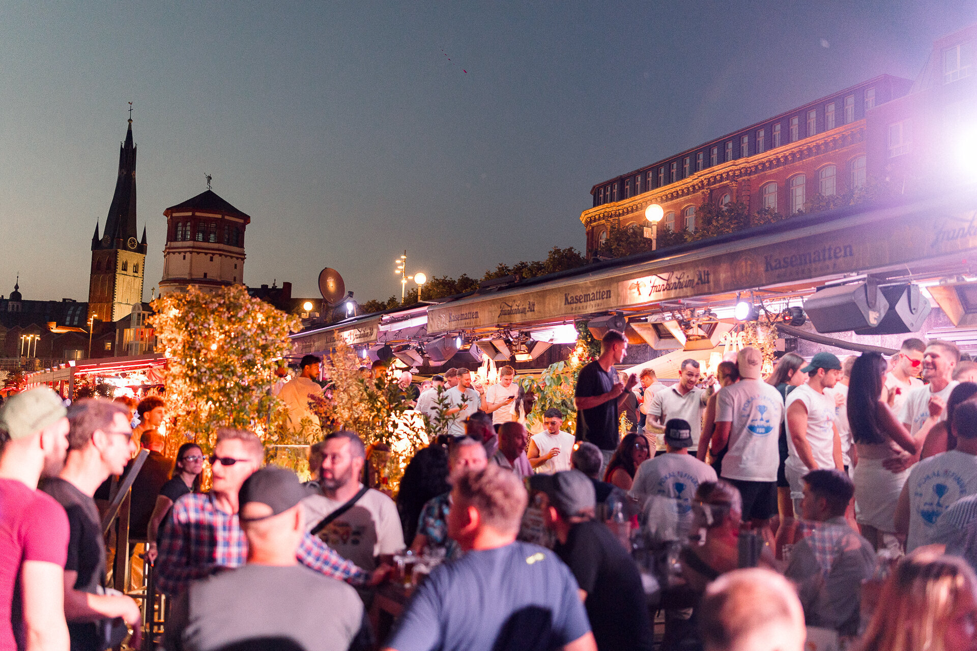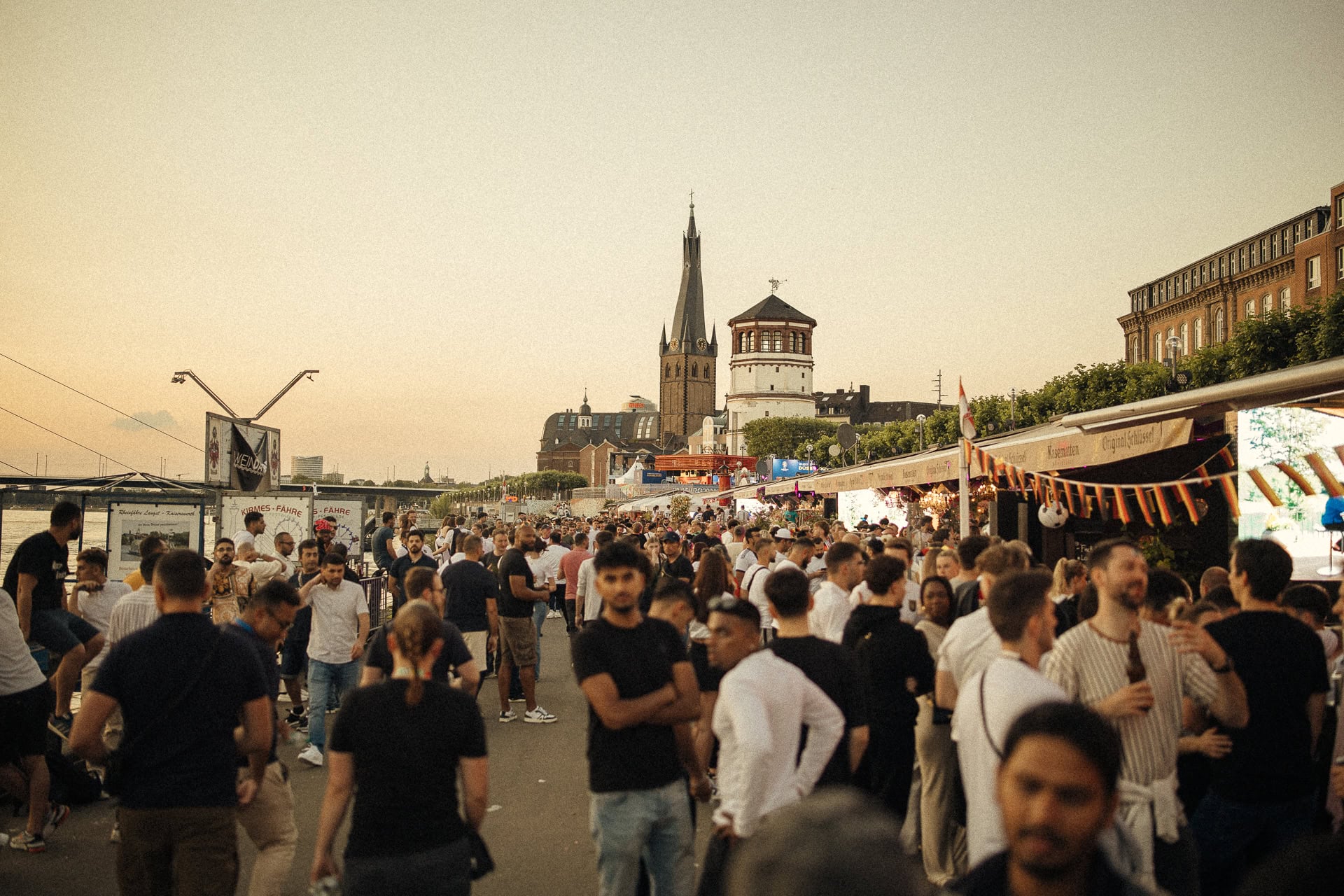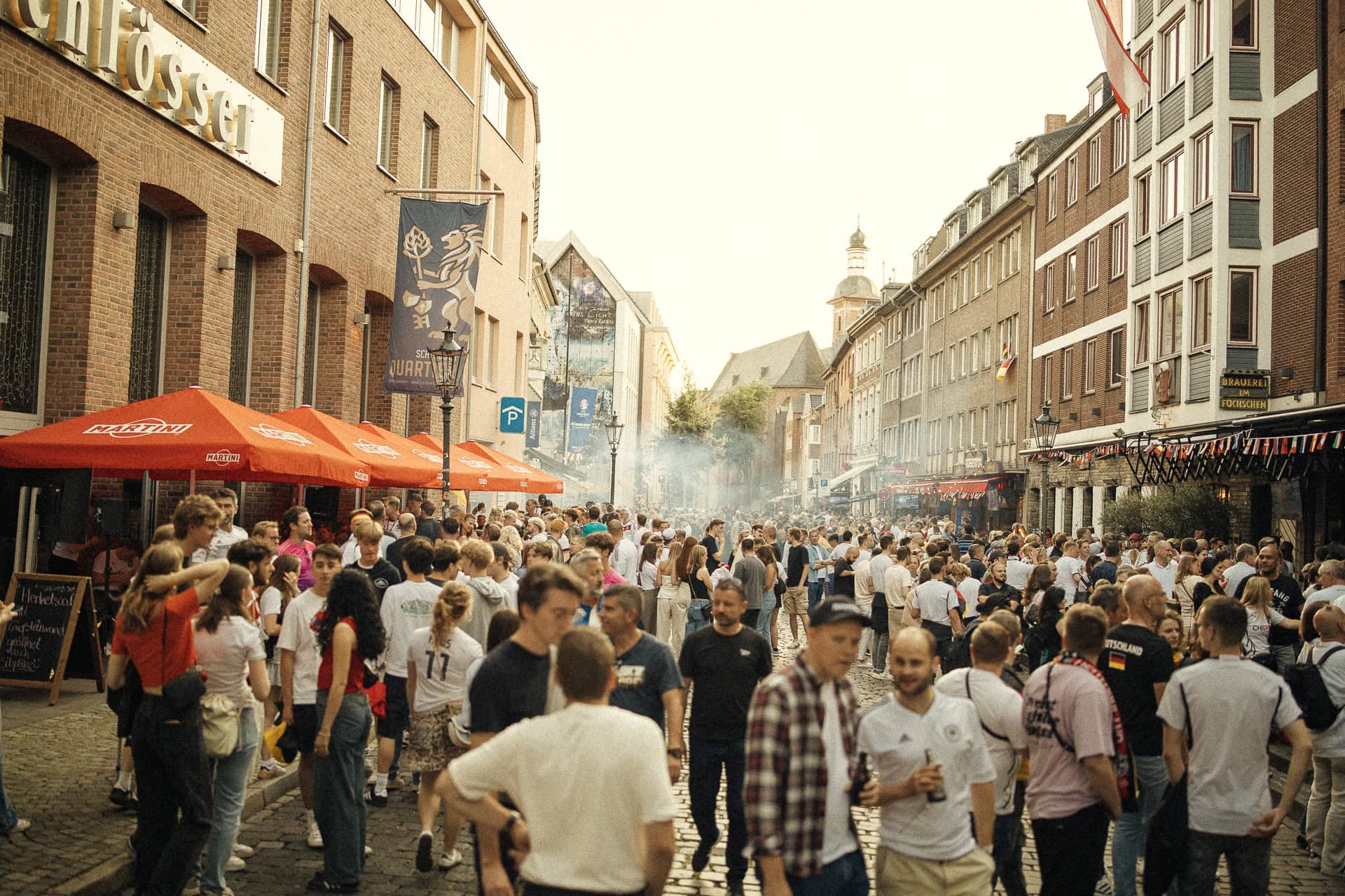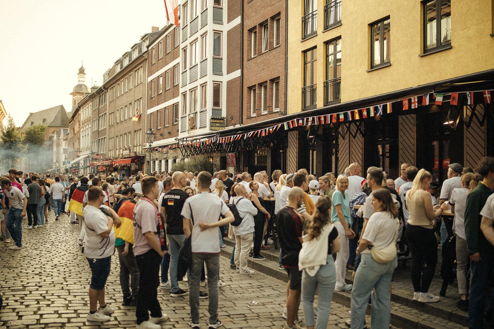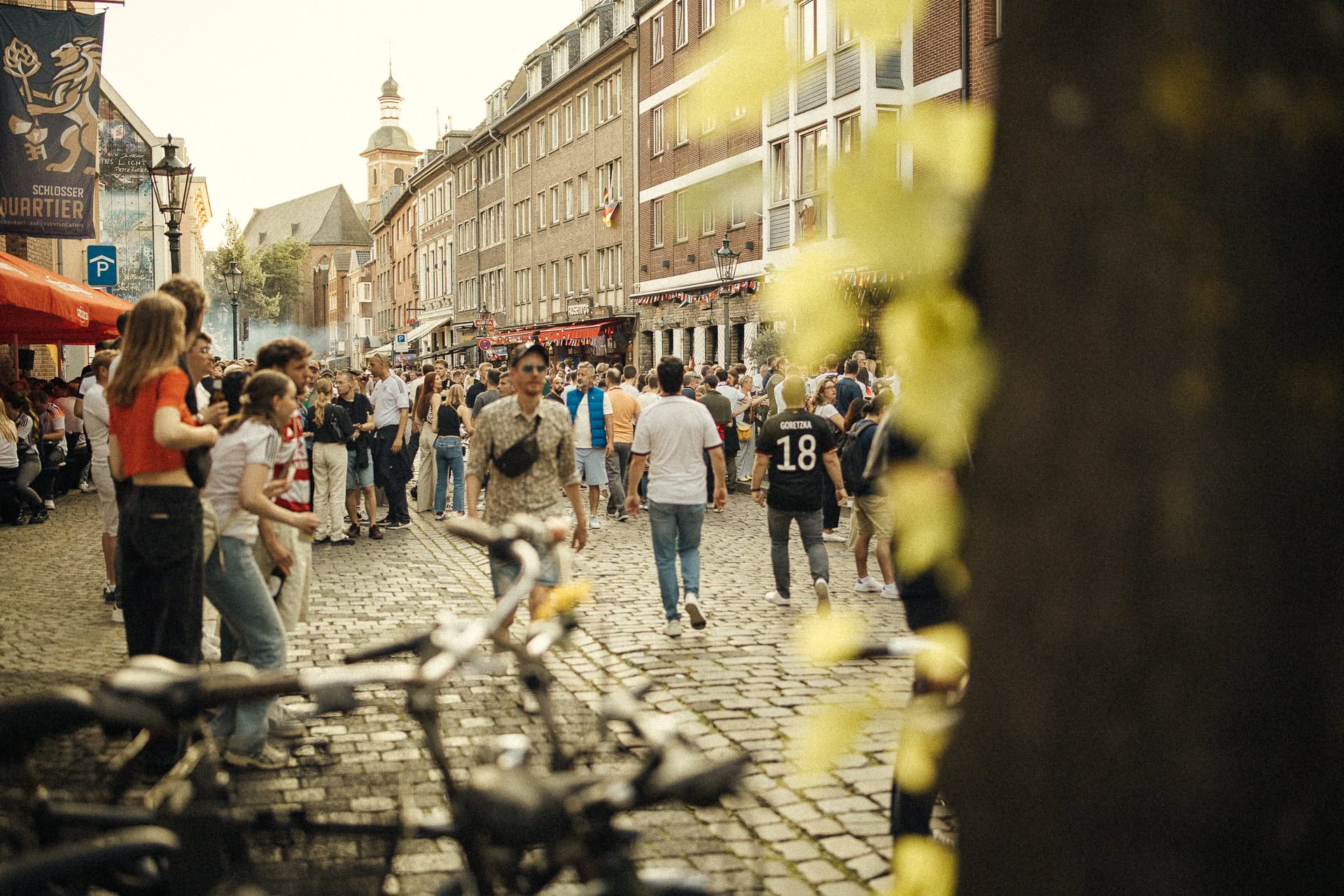 Während der Fußball-EM der Frauen 2025 lockt die Düsseldorfer Altstadt zum Public Viewing. Foto: Tonight / Ben Liebsch