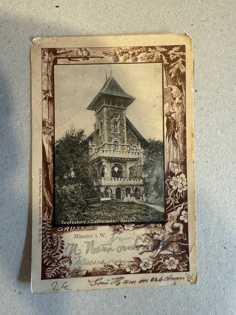 Die uralte Postkarte zeigt die Tuckesburg in Münster.