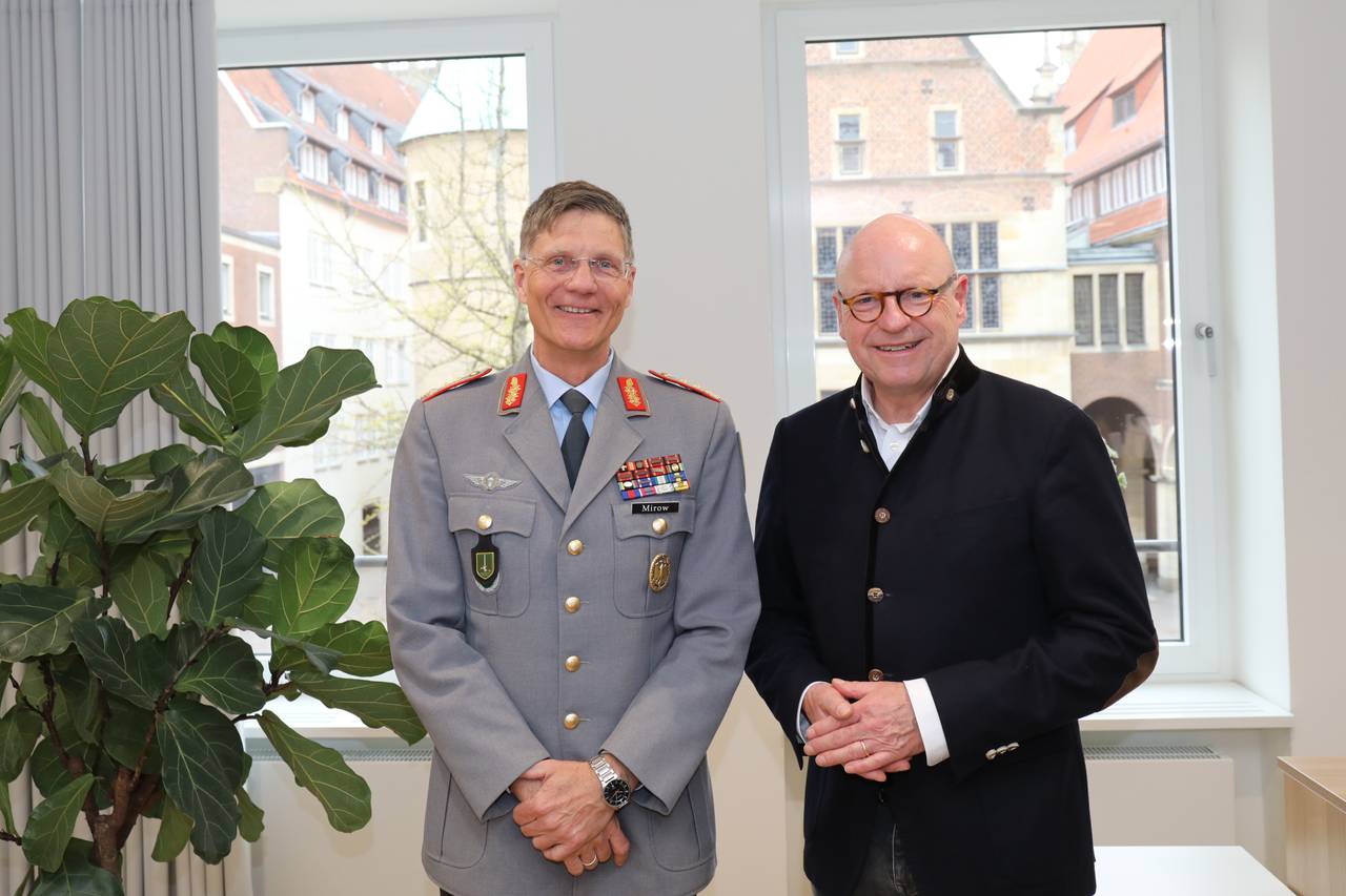 Oberbürgermeister Markus Lewe (r.) empfing am Freitag, 11. April, Generalleutnant Peter Mirow