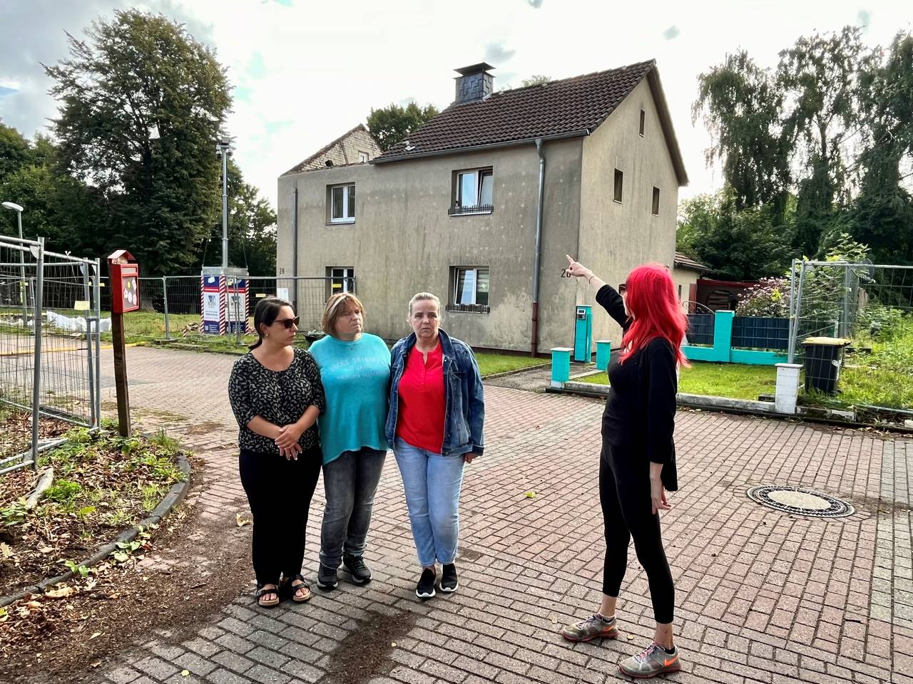 Aber der Abriss in der Literrode in Essen geht weiter. Wenn Sarahs Nachbarhaus weg ist, kommen fünf weitere Doppelhaushälften weg. Die blanken Mauern sollen gegen Feuchtigkeit und Kälte abgesichert werden. Dafür nehmen die Handwerker Ziegel und Dachpfannen der abgerissenen Häuser. Dass es laut und staubig wird, lässt sich nicht vermeiden, sagt die Allbau. Wie lange die letzten Mieter der Litterrode noch bleiben dürfen, entscheidet das Amtsgericht Steele. Anfang September sind zwei Termine, direkt in der Wohnsiedlung, nicht im Gerichtsaal. Dass sie ausziehen müssen, hatte die Allbau den Mietern schon vor etwa anderthalb Jahren angekündigt. Von den insgesamt 36 Doppelhaushälften sind bisher 16 abgerissen.