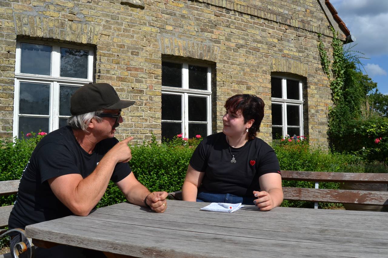 Während der Planungen für das „Everybody’s Famous“-Festival am 13. September: Henning Wehland (links) und Emmy auf dem Hof des Musikers in Münsters Norden.© ANTENNE MÜNSTER/Overmann