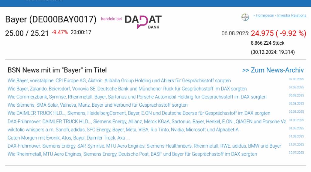 Bayer am 6.8. -9,92%, Volumen 229% normaler Tage
