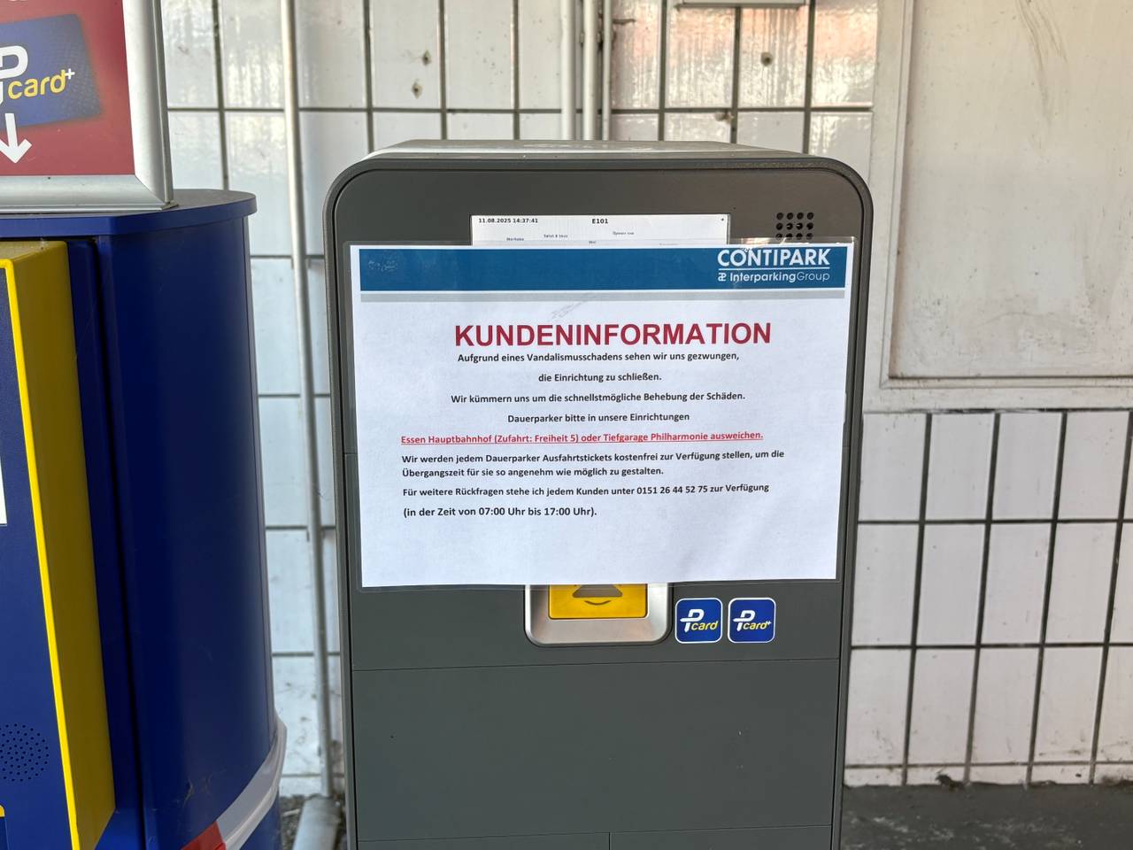 In Essen wurde jetzt kurzfristig das Parkhaus an der Hindenburgstraße geschlossen. Der Betreiber Contipark hat für alle Dauermieter einen Hinweis aufgehängt.
