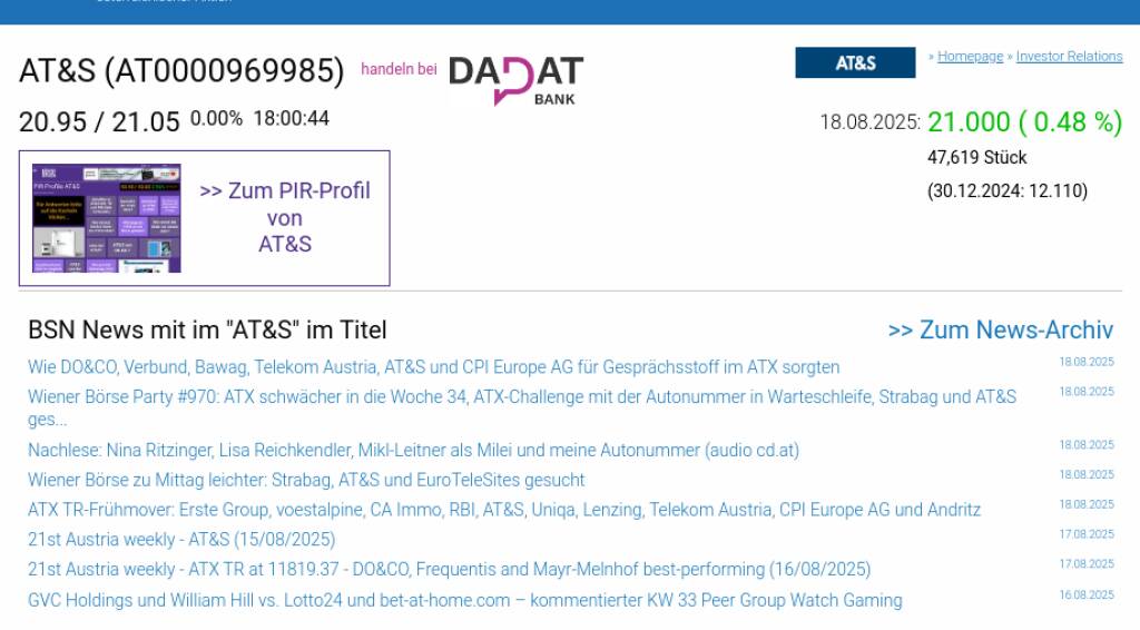 AT&S am 18.8. 0,48%, Volumen 38% normaler Tage