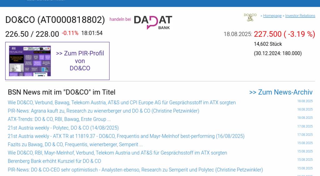 DO&CO am 18.8. -3,19%, Volumen 90% normaler Tage