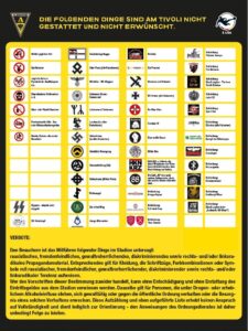 Um klare Kante gegen Symboliken, Gedankengut, Erkennungszeichen oder Handlungen aus dem rechts- und/oder linksextremen Spektrum zu zeigen, setzt die Alemannia mithilfe von an den Tivoli-Eingängen angebrachten Tafeln eindeutige Zeichen. Ohne Anspruch auf Vollständigkeit gilt: Alle Symbole, Abkürzungen und Bekleidungsmarken, die dort gelistet sind, haben am Tivoli nichts verloren. Bei Zuwiderhandlungen ist mit den entsprechenden Konsequenzen zu rechnen.