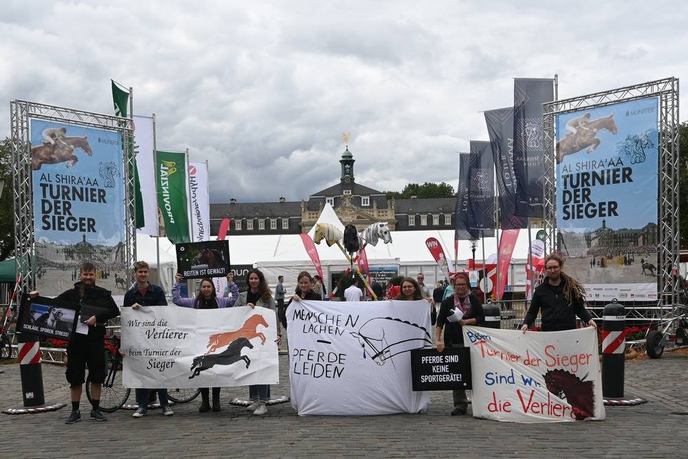 Der Tierbefreiungstreff Münster demonstriert gegen das Turnier der Sieger.