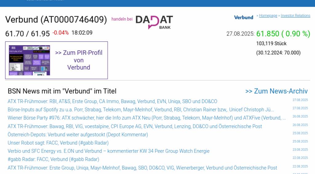 Verbund am 27.8. 0,90%, Volumen 81% normaler Tage