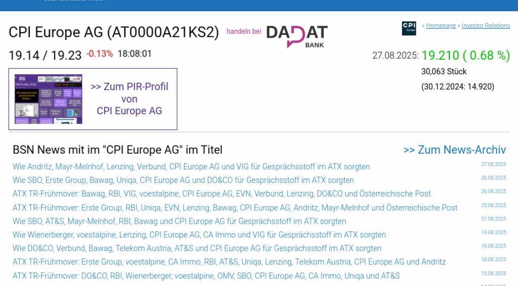 CPI Europe AG am 27.8. 0,68%, Volumen 59% normaler Tage