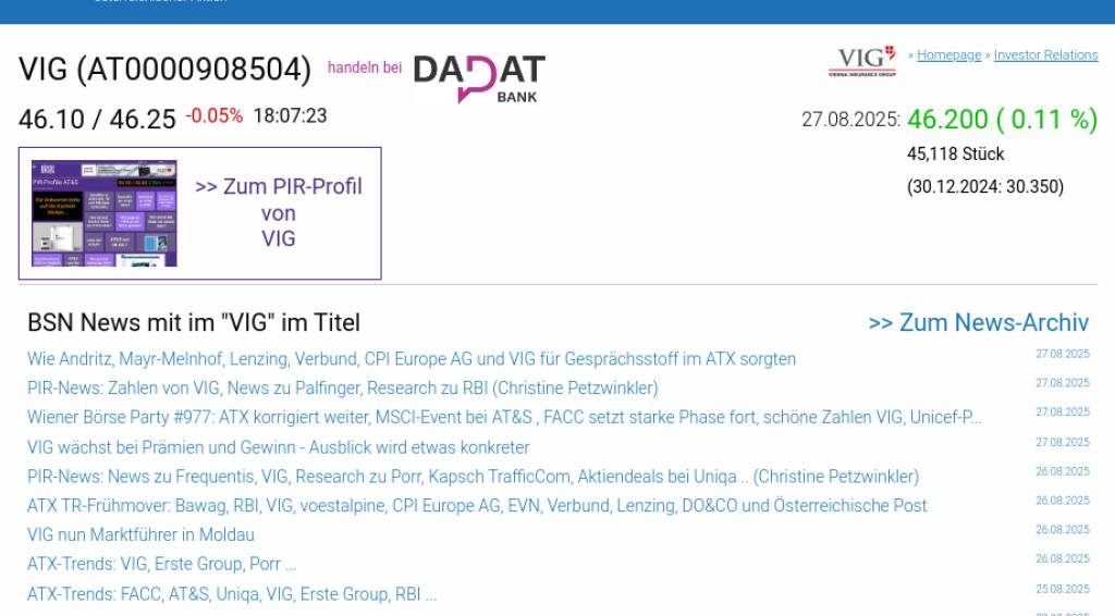 VIG am 27.8. 0,11%, Volumen 104% normaler Tage