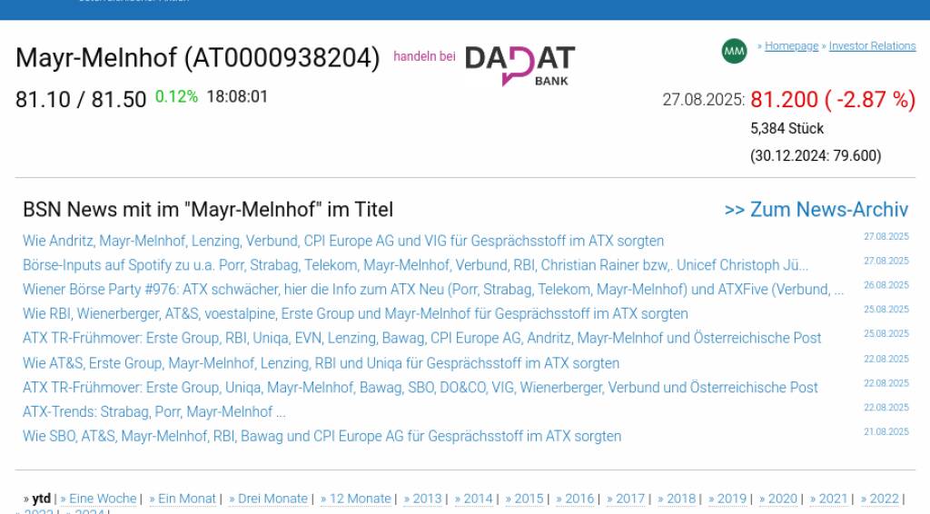 Mayr-Melnhof am 27.8. -2,87%, Volumen 56% normaler Tage