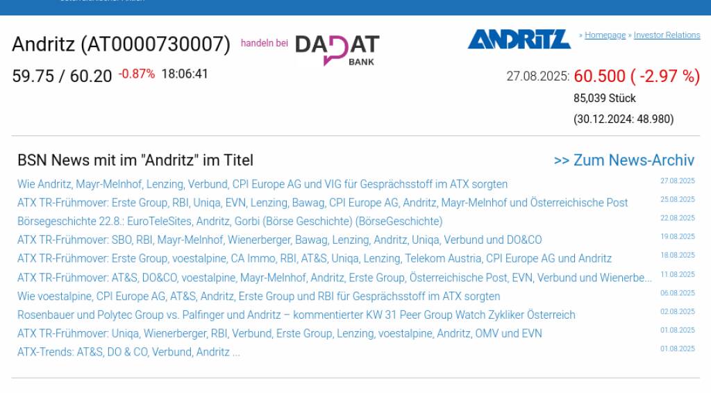 Andritz am 27.8. -2,97%, Volumen 93% normaler Tage