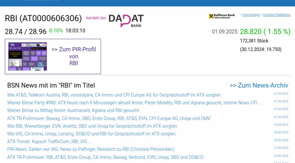 Wiener Börse Party #980: ATX heute nach 6 Minustagen aktuell fester, Pierer Mobility, RBI und Agrana gesucht, interne News CPI Europe