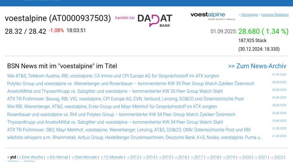 voestalpine am 1.9. 1,34%, Volumen 59% normaler Tage