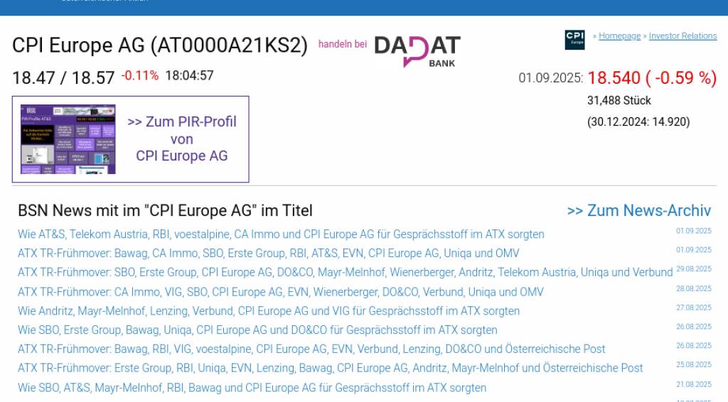 CPI Europe AG am 1.9. -0,59%, Volumen 62% normaler Tage