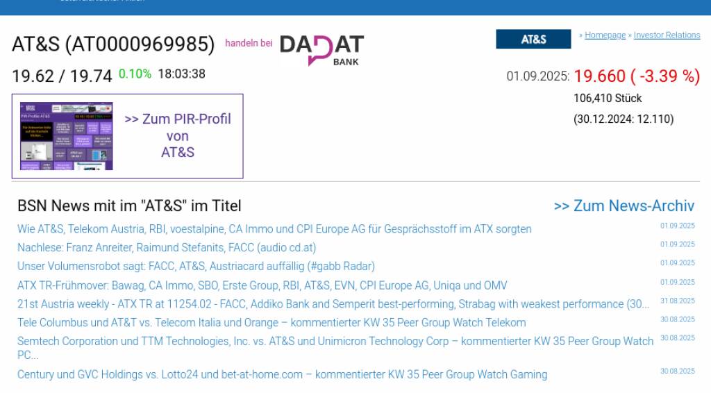 AT&S am 1.9. -3,39%, Volumen 83% normaler Tage