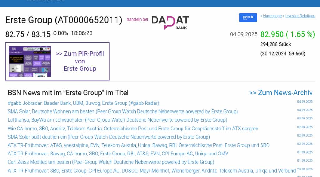 Erste Group am 4.9. 1,65%, Volumen 60% normaler Tage
