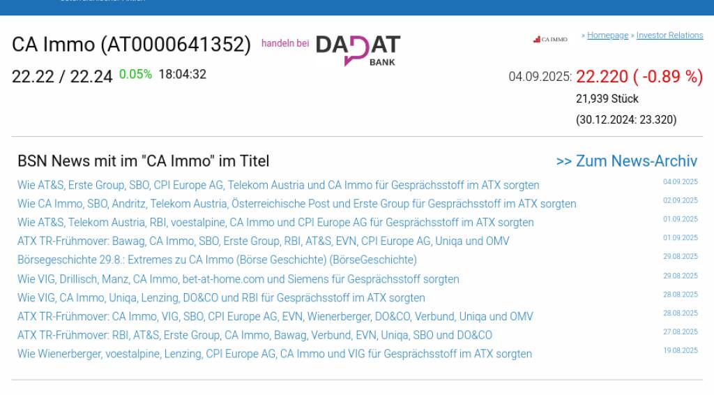 CA Immo am 4.9. -0,89%, Volumen 29% normaler Tage