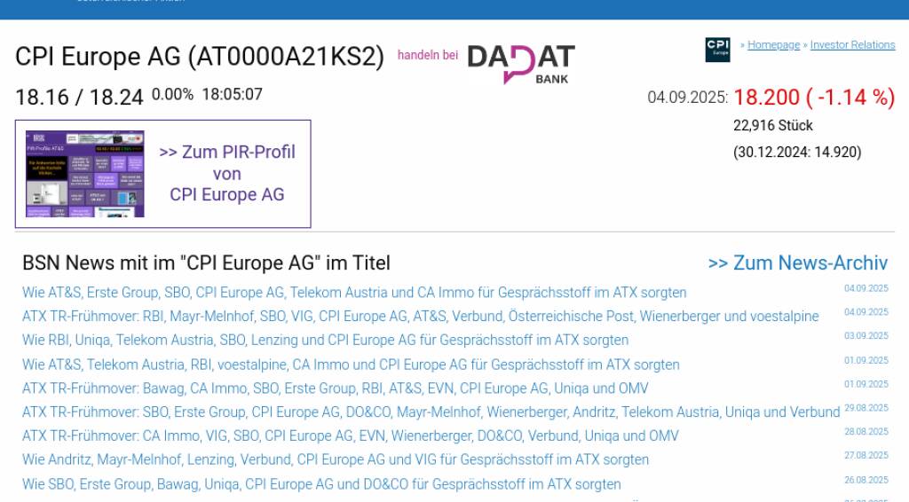 CPI Europe AG am 4.9. -1,14%, Volumen 46% normaler Tage