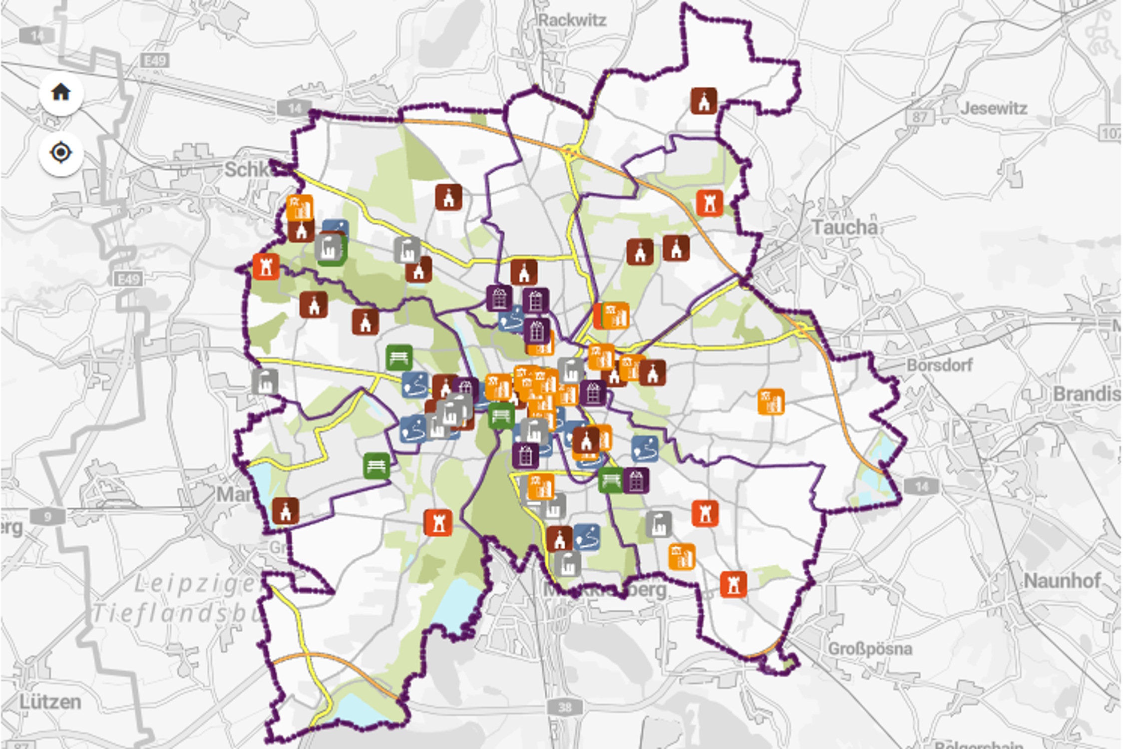 Eine interaktive Karte der Stadt Leipzig zum Tag des offenen Denkmals. Grafik: Stadt LeipzigInteraktive Karte der Stadt Leipzig zum Tag des offenen Denkmals. Grafik: Stadt Leipzig