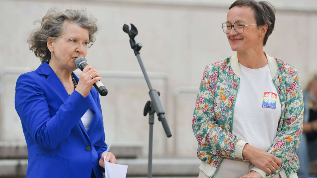 Sabine Henniger (links) und Alexandra Stork fordern: Keine Kürzung bei den Ärmsten. Foto: LICHTGUT/Max Kovalenko