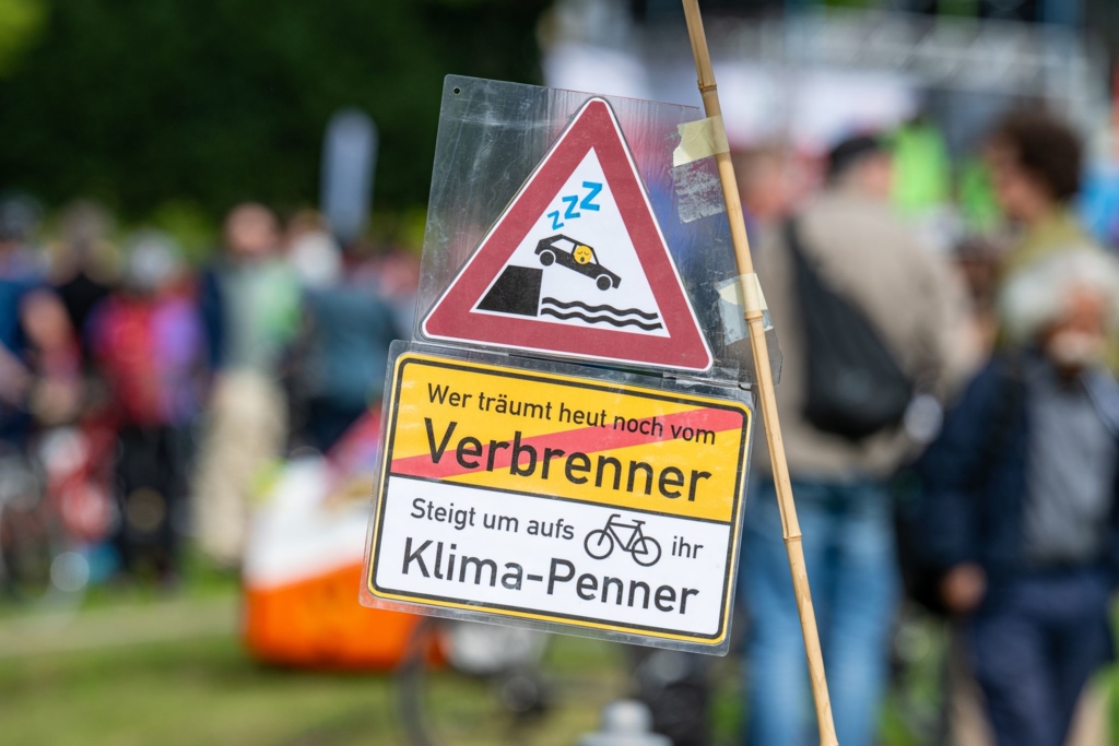 IAA Mobility – Demonstration – Die Teilnehmerinnen und Teilnehmer demonstrieren gegen die Fortsetzung der IAA Mobility. – Foto: Armin Weigel/dpa