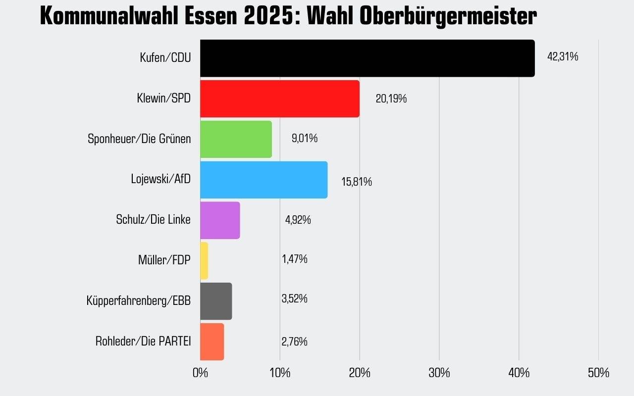 Vorläufiges Ergebnis der OB-Wahl in Essen vom 14. September 2025