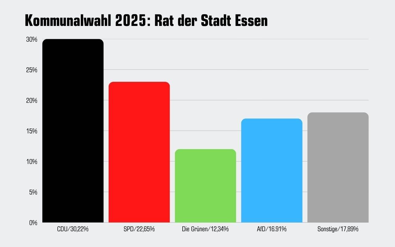Vorläufiges Ergebnis der Stadtratswahl 2025 in Essen
