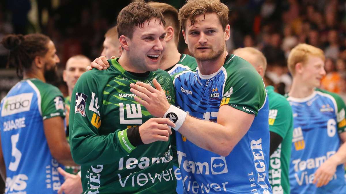 Daniel Rebmann (li.) und David Schmidt gemeinsam im Frisch-Auf-Dress. Foto: Pressefoto Baumann