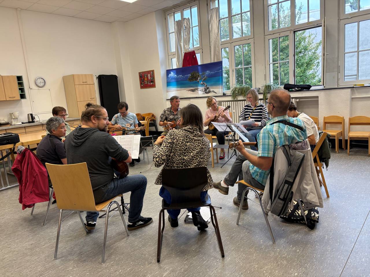 Ukulelespieler in Essen begeistert in der Probe