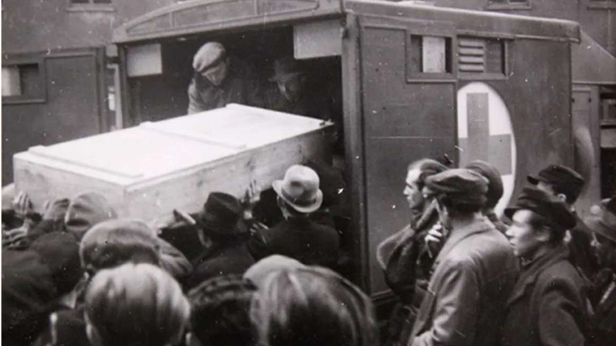 Die Leiche Shmuel Dancygers wird abtransportiert Foto: Archiv des Jüdischen Museums, Berlin
