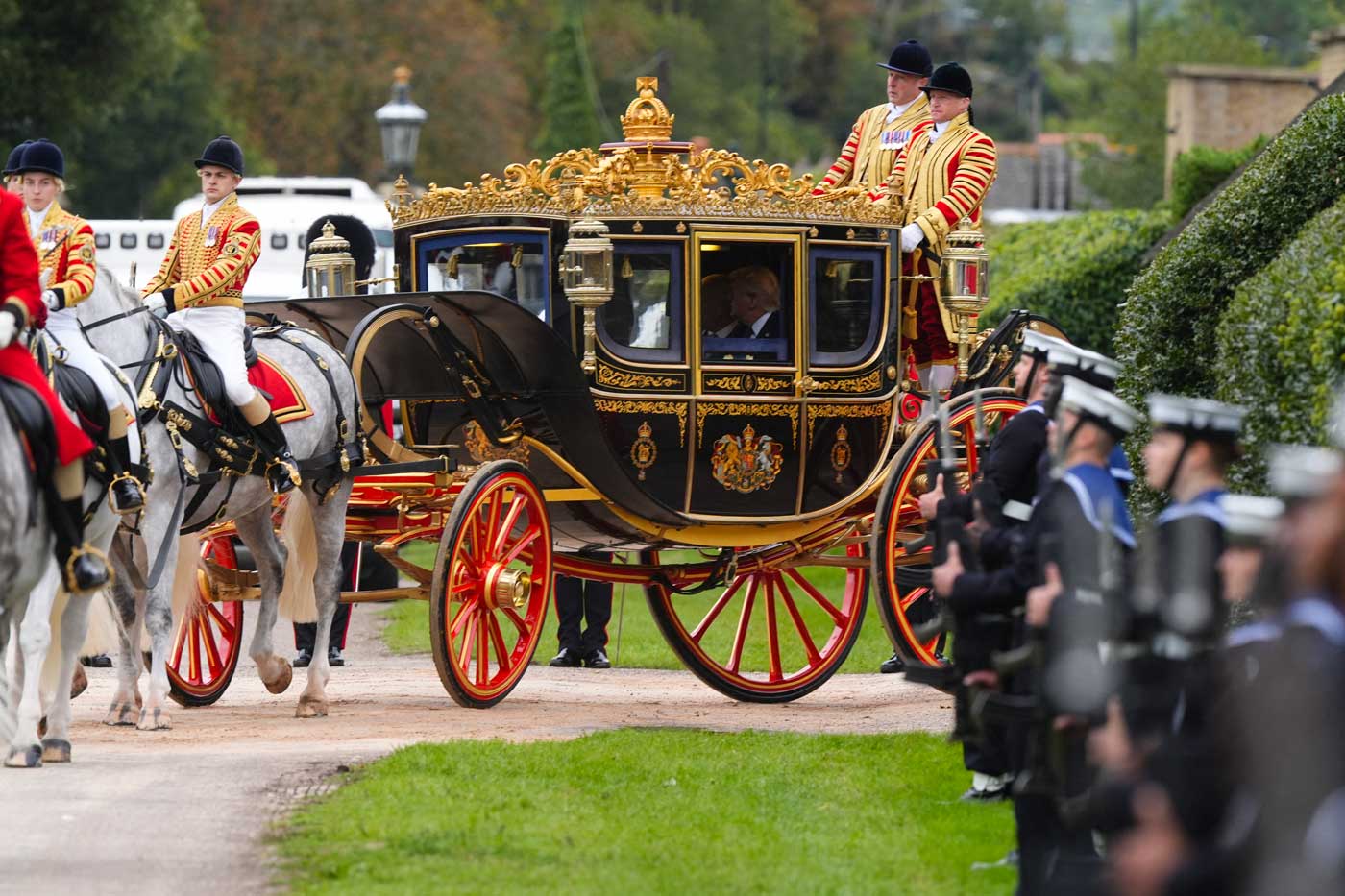 Der britische Monarch hat auch die Gewohnheit, mit seinen Gästen in einer Kutsche durch London zu fahren. Die Prozession führt sie zum Buckingham-Palast. Drei Militärkapellen der Royal Marines, der British Army und der Royal Air Force spielten entlang der Strecke Marschmusik, wie The Guardian berichtet. Aufgrund der laufenden Bauarbeiten und der Feierlichkeiten in Windsor findet die Kutschfahrt nun in dieser kleinen Ortschaft etwa vierzig Kilometer westlich von London statt. Aufgrund der hohen Sicherheitsvorkehrungen rund um diesen amerikanischen Besuch wurde die Kutschfahrt durch die Straßen von Windsor ausnahmsweise durch eine Prozession auf dem Windsor-Anwesen ersetzt. Normalerweise dient die Parade dazu, die Bevölkerung zu begrüßen. An diesem Mittwoch war jedoch keine Zuschauer an der Strecke zugelassen. Anstelle der Bevölkerung säumten Soldaten den Weg.