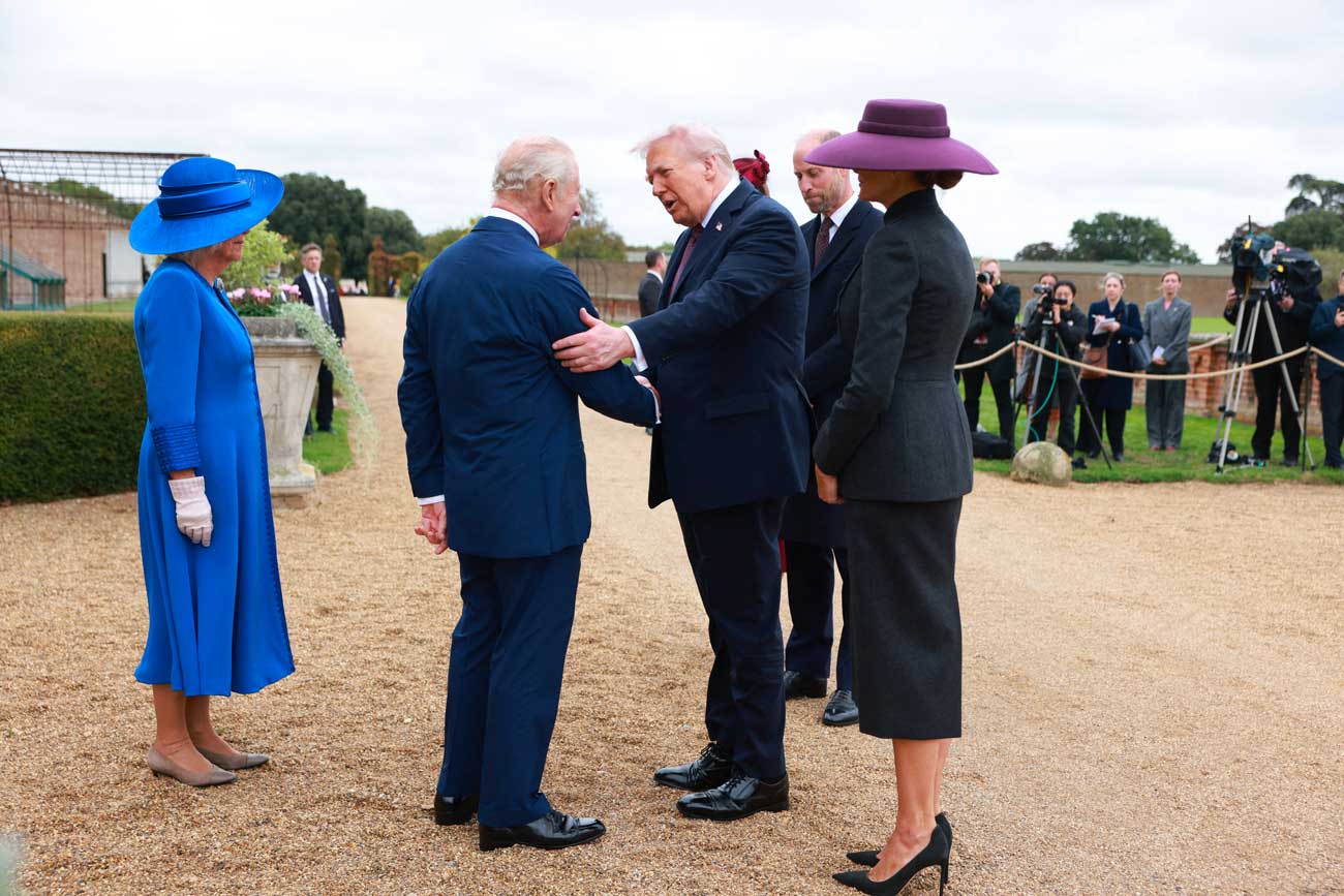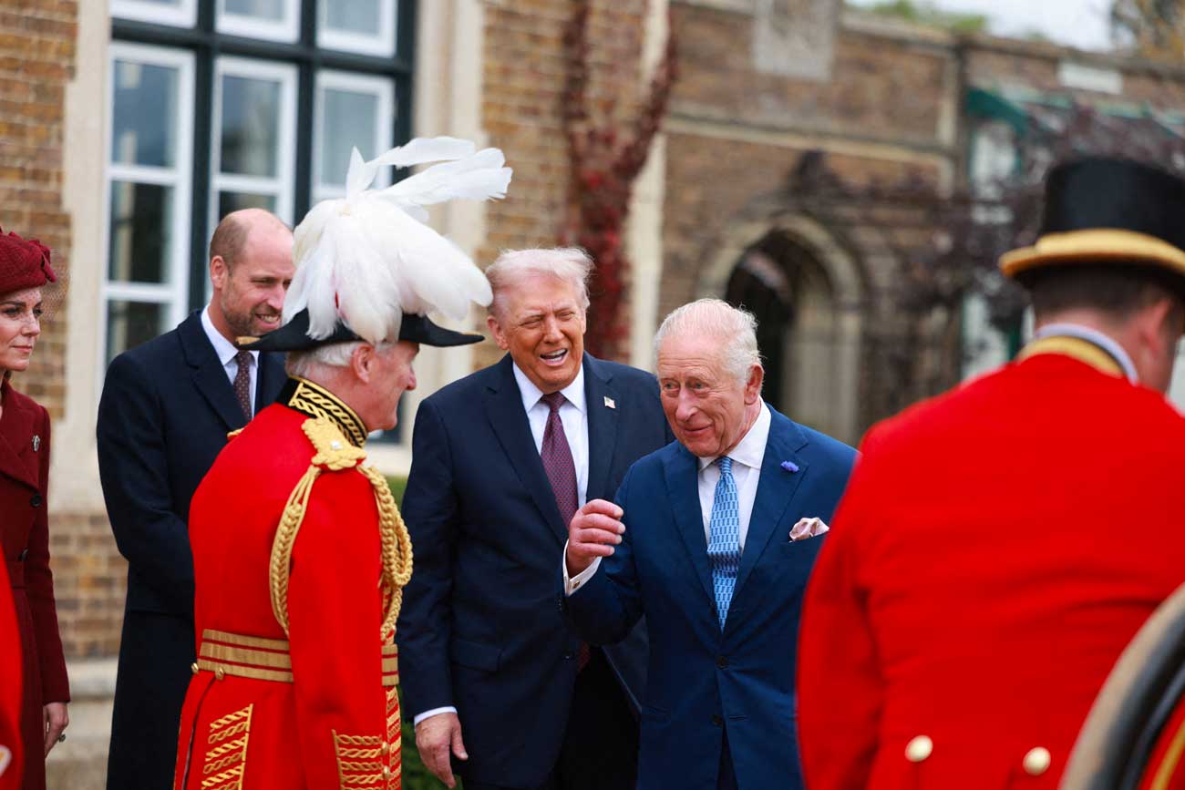 Der Prinz und die Prinzessin von Wales hatten die Aufgabe, ihren amerikanischen Gästen als Erste die Hand zu schütteln. König Charles III. und Königin Camilla begrüßten anschließend das Präsidentenpaar und begaben sich dann in Kutschen zum Windsor Castle. Normalerweise empfängt der britische Monarch seine Gäste an seinem offiziellen Arbeitsplatz, dem Buckingham-Palast. Da dieser jedoch seit mehreren Jahren renoviert wird, war der letzte Staatsbesuch im Herzen Londons der des Emirs von Katar im Dezember 2024. Der Besuch des französischen Präsidenten Emmanuel Macron im Juli war der erste, der in Windsor stattfand.