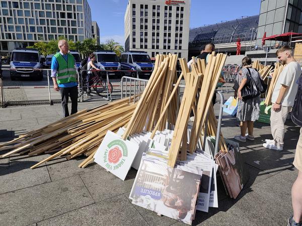 Um die Mittagszeit sammeln sich bereits einige hundert Teilnehmende auf dem Washingtonplatz beim Berliner Hauptbahnhof, berichtet ein Reporter vor Ort. Es spielt eine Band, die ersten holen sich schon die bereitliegenden Demo-Schilder ab. Darauf zu lesen sind Slogans wie „Verantwortung statt Abtreibung“ oder „Mama ich liebe dich! Liebe mich auch!“, neben der Abbildung einer schwangeren Frau.