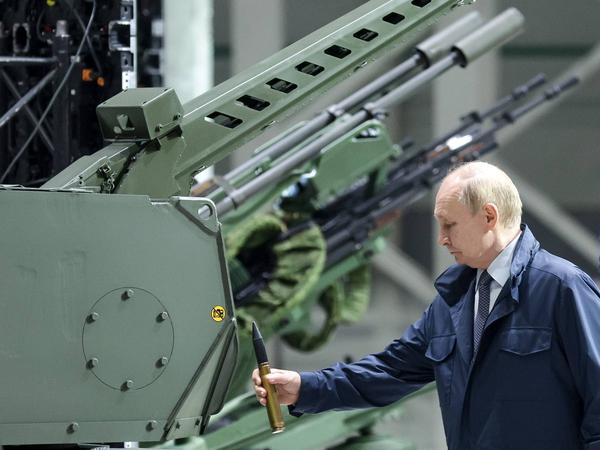 Russlands Präsident Wladimir Putin besucht eine Waffenschau.