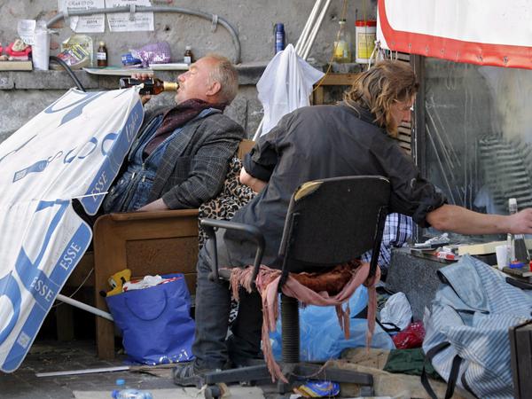 Obdachlose in Moskau beim Alkoholkonsum (Archivbild von 2007).