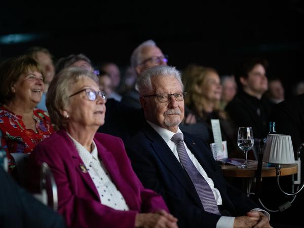 Im Publikum auch der Vater des Star-Anwalts. Georg Schertz (rechts) war von 1987 bis 1992 Polizeipräsident in Berlin. „Es wurde immer gestritten am Abendbrottisch“, sagte Schertz’ Mutter (links) mit Blick auf die linke Jugend ihres Sohnes.