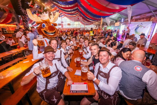 Bei der Eröffnung des Dortmunder Oktoberfests 2025 samt Fassanstich waren neben vielen ausgelassenen Besuchern auch der Schlager-Star „Olaf der Flipper“ und die Band „Münchner G’schichten“ dabei. © Stephan Schütze