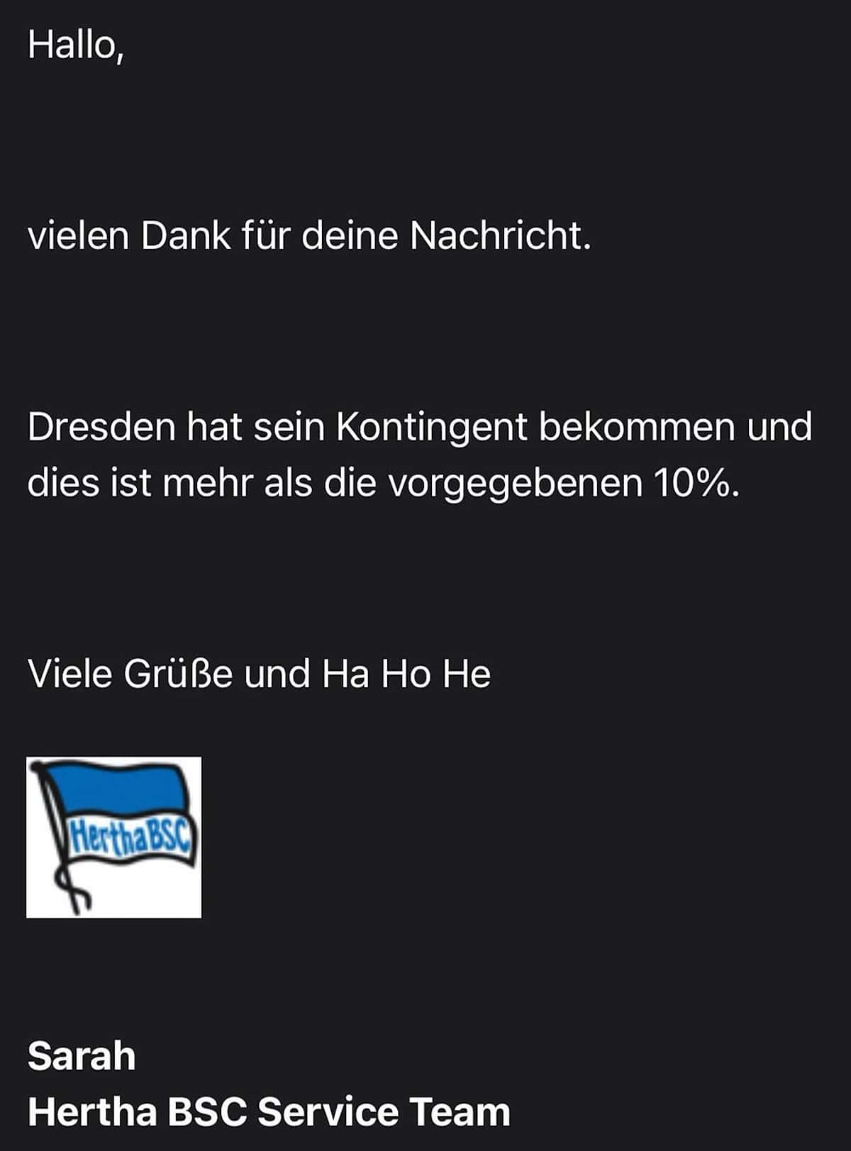 Das antwortete Hertha BSC auf die Frage ob es noch ein Zusatzkontingent geben wird.