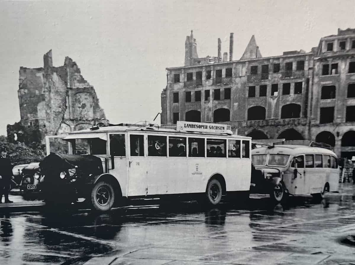 Landesbühnen-Bus: So sah es im Februar 1951 am Dresdner Postplatz aus.