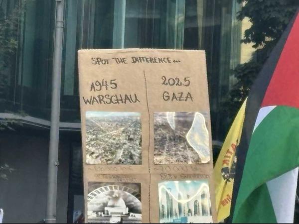 Auf der Höhe des Berliner Doms zieht die „All Eyes on Gaza“-Demo an einer pro-israelischen Gegendemo vorbei. Die Polizei hat die beiden Demos breit voneinander abgeschirmt. Unter den etwa hundert Gegendemonstranten befinden sich zum Beispiel die „Omas gegen rechts“. Aus der Gaza-Demo buhen vereinzelt Teilnehmer die Gegenseite aus, rufen laut „Shame on you“. Es sind mehrere kleinere Gegendemos in Berlin angemeldet.