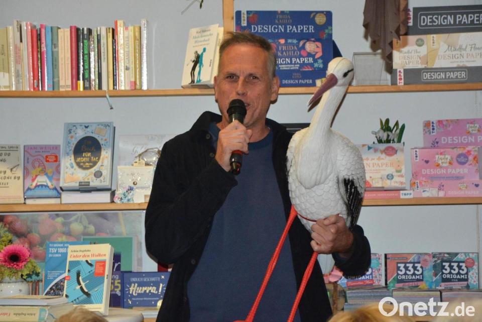 Achim Bogdahn hatte auch seinen Schwan vom Titelblatt seines Buches nach Tirschenreuth mitgebracht.