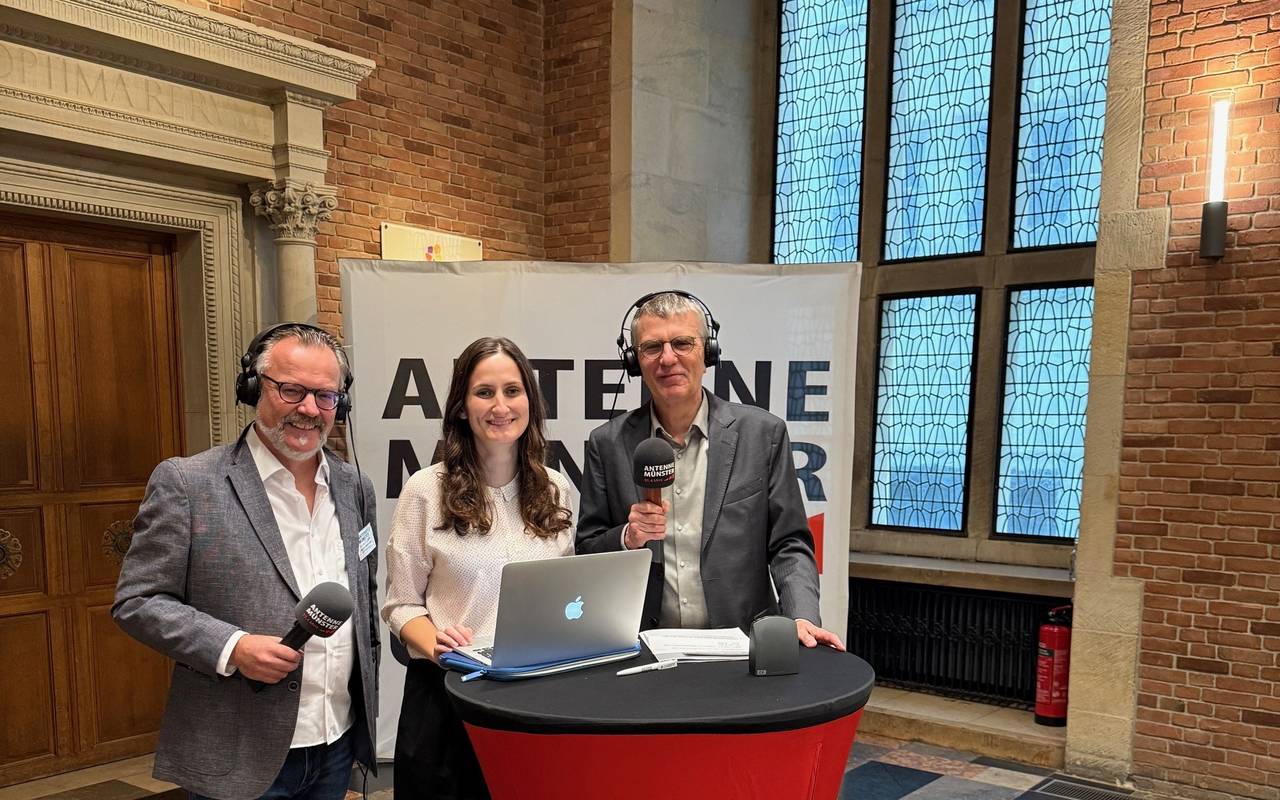 Wer wird neuer Oberbürgermeister in Münster? Es berichten live aus dem Rathaus (v.l.n.r.): Chefredakteur Stefan Nottmeier, Online-Reporterin Lena Zils, Chefreporter Matthias Menne.