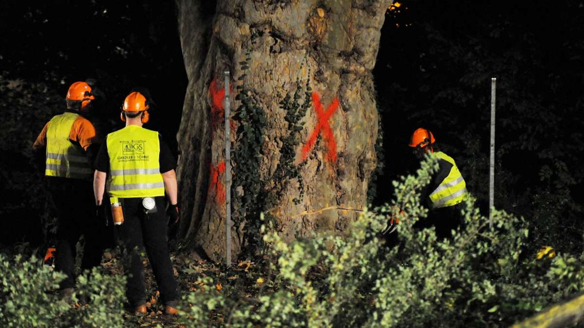 Noch in der Nacht werden die ersten Bäume im Schlossgarten gefällt. Foto: dpa