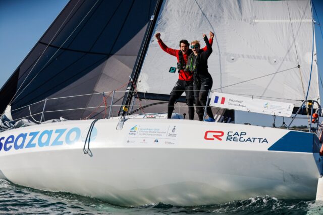 Die neuen Mixed-Offshore-Weltmeister aus Frankreich: Thea Khelif und Thomas Andre. ©Paul Wyeth / RORC