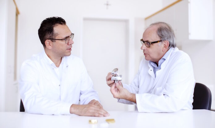 Chefarzt Dr. Thomas Kruppa im Gespräch mit dem Leitenden Arzt Dr. Bernhard Verhestraeten (Foto: © St. Augustinus Gruppe)