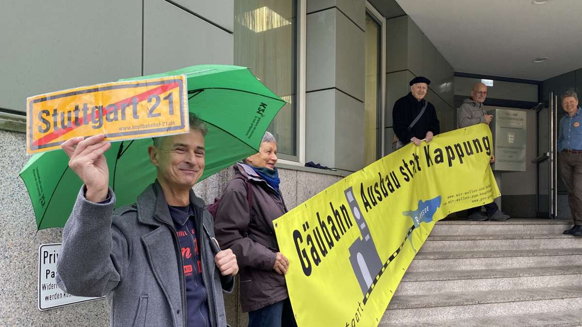Als die Klagen in Stuttgart verhandelt wurden, gab es vor dem Gericht eine kleine Demonstration. Foto: Christian Milankovic