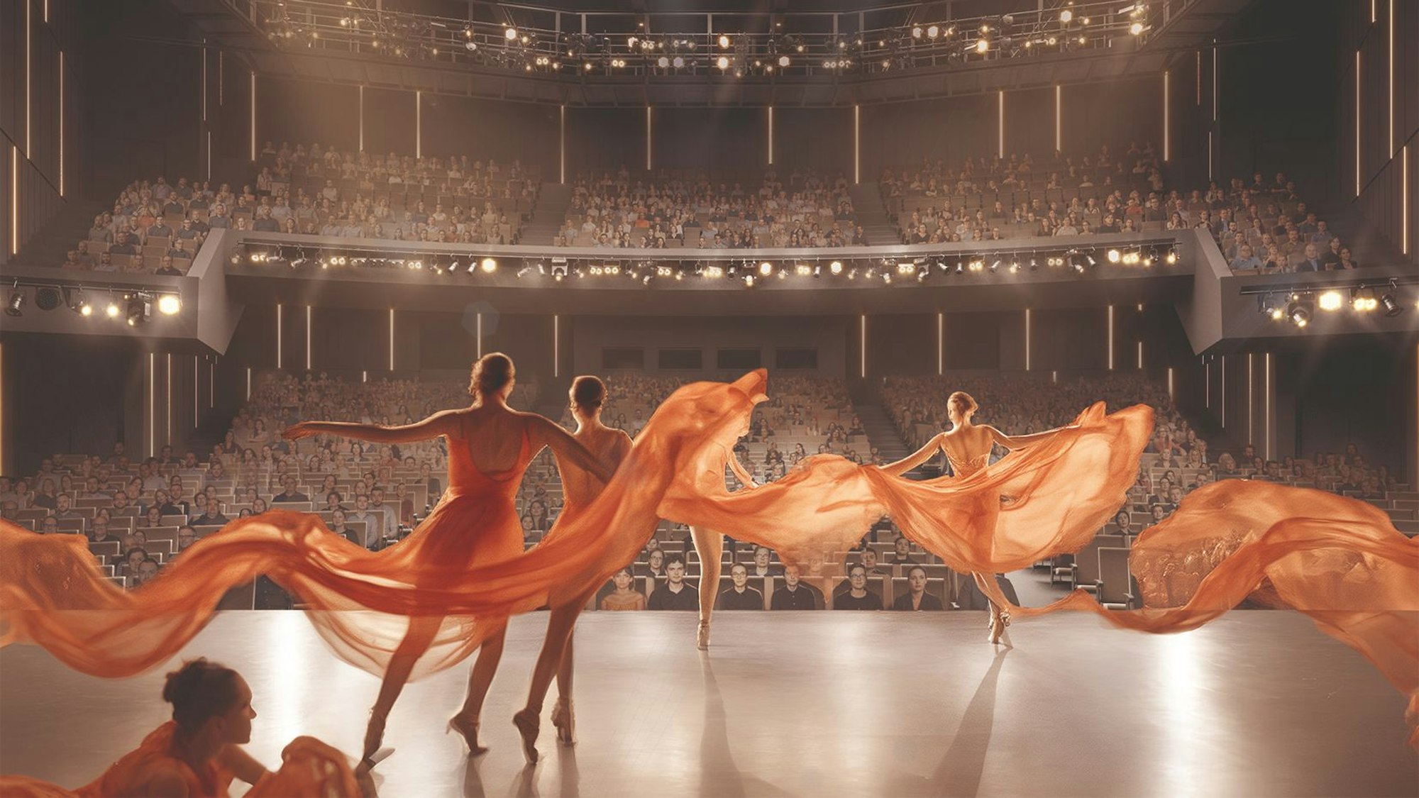 Die Visualisierung zeigt den Blick in den Zuschauerraum des neuen Musical-Theaters.