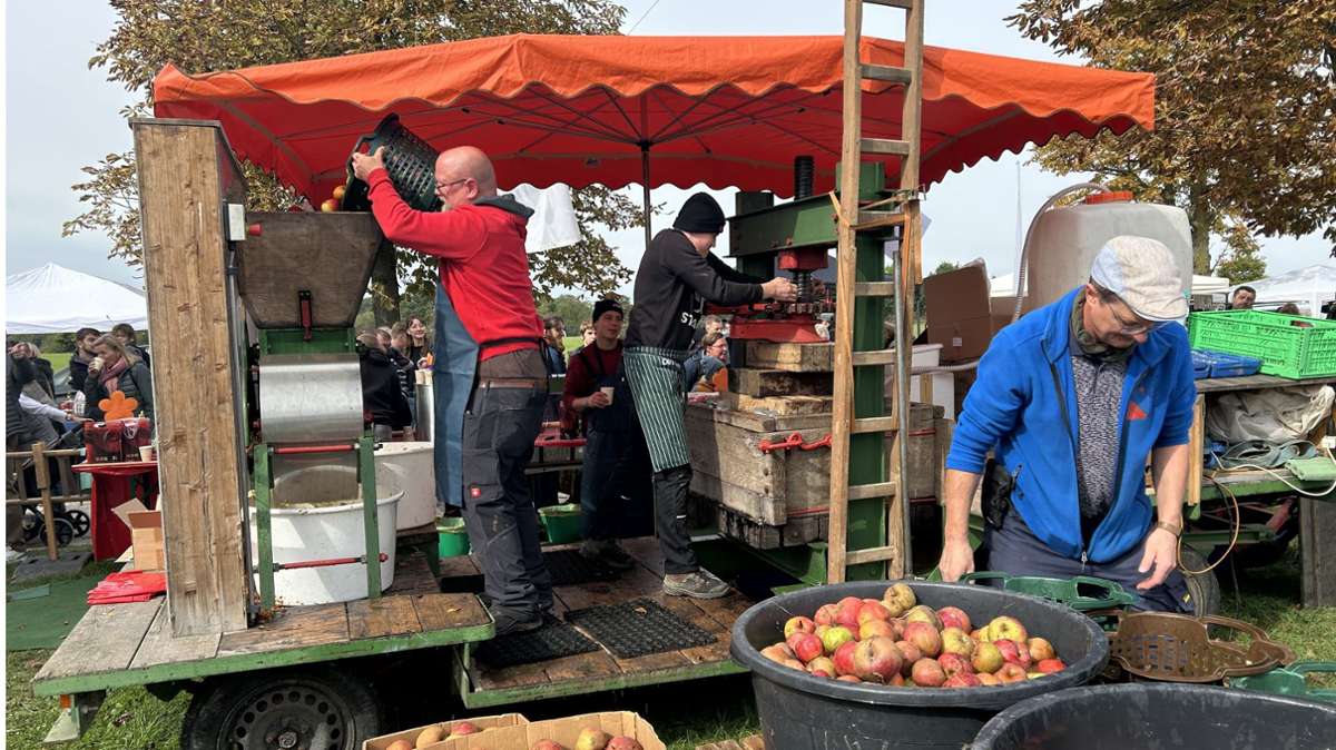 Ostfildern legt Wert auf familiäre Atmosphäre Frisch gepresster Apfelsaft von heimischen Streuobstwiesen lud zum Probieren ein. Foto: Kerstin Dannath
