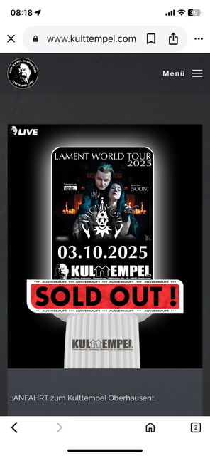 Wenn ein Konzert schon Wochen im Voraus restlos ausverkauft ist, darf man davon ausgehen, dass etwas Besonderes bevorsteht. Genau das bewies Lacrimosa am gestrigen Abend im Oberhausener Kulttempel: ein Abend voller Leidenschaft, musikalischer Perfektion und einer Aura, die man in dieser Form nur selten erlebt.